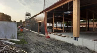 - Die Trennwand zwischen Reithalle und Casino wird derzeit montiert.