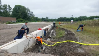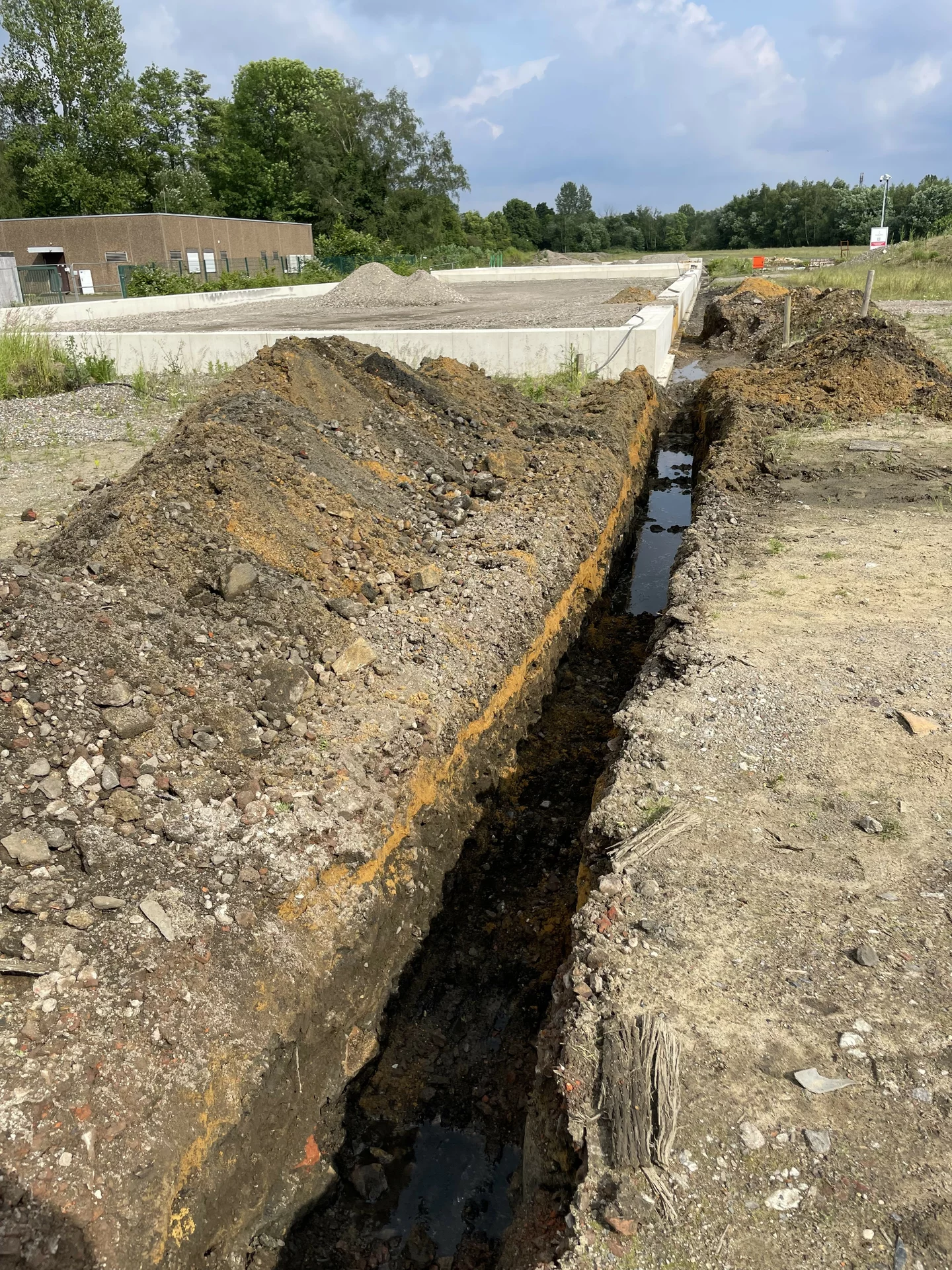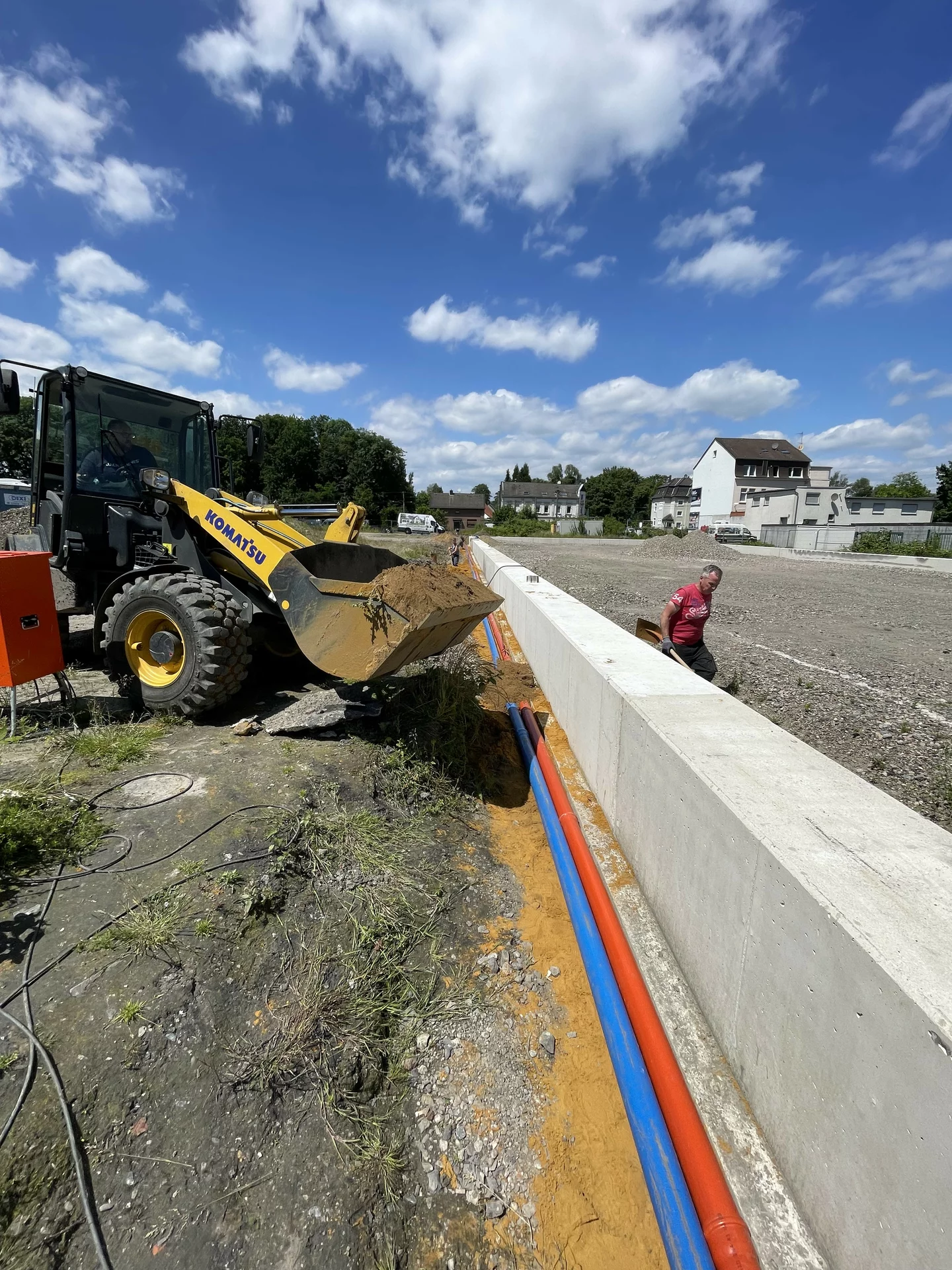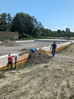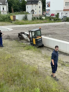 - Die Firma Hullmann hat die Entwässerung bis zur Grundstücksgrenze verlegt und arbeitet aktuell an den Anschlüssen zu den Rigolen.