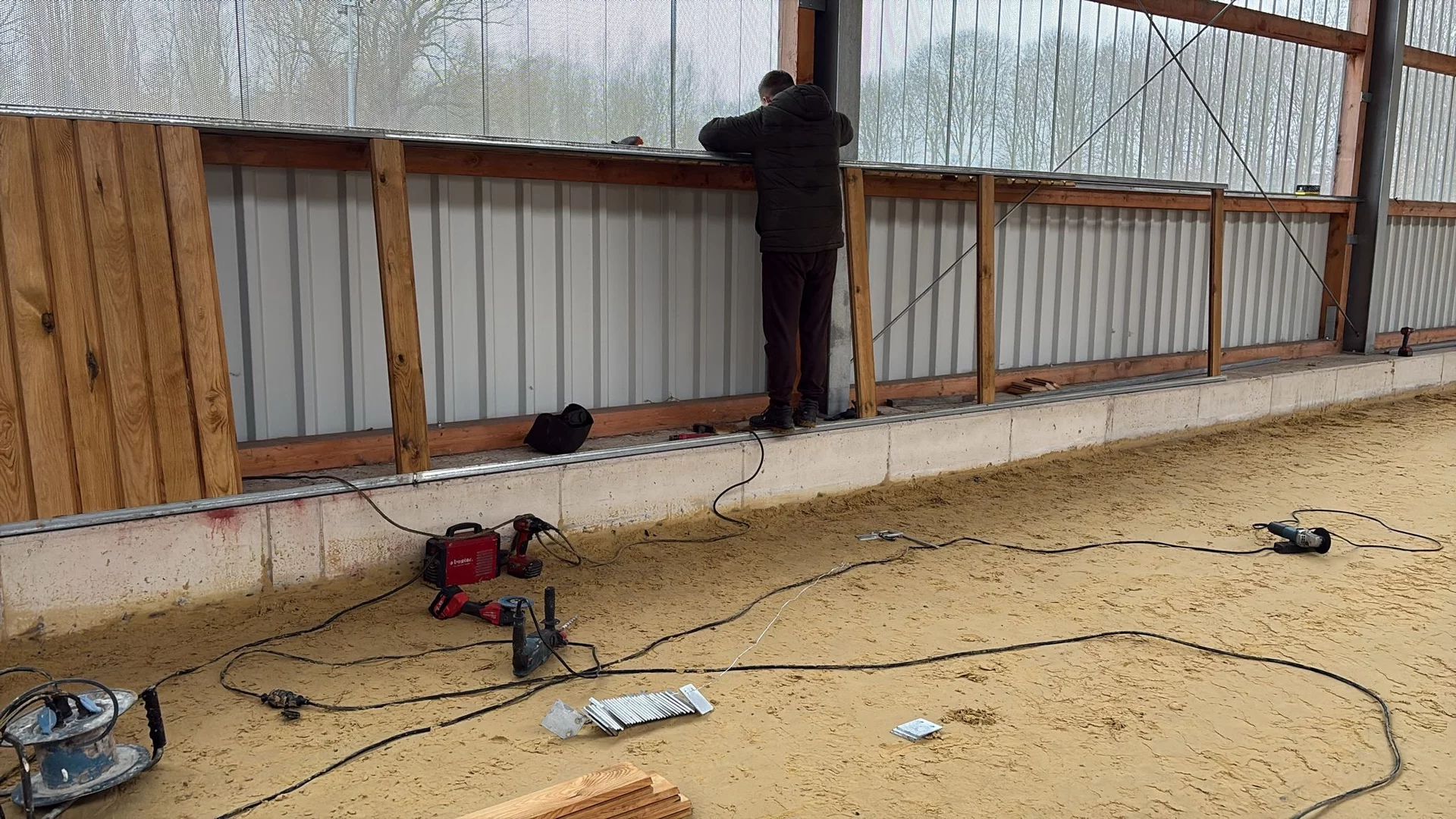 In unserer Reithalle wird aktuell die Bande montiert. Mit jedem Arbeitsschritt kommen wir unserem Ziel ein Stück näher und die Halle nimmt immer mehr ihre endgültige Form an.