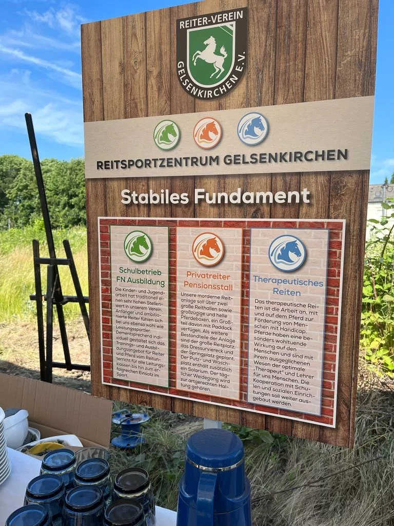 Der symbolische Spatenstich für den Neubau des Reitervereins Gelsenkirchen e.V. an der Horster Straße 347 in Gelsenkirchen fand im Juni 2023 statt.